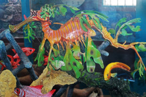 This was a joint UNDP and Gulf of Mannar Biosphere Reserve Trust (GoMBRT) undertaking. The concept was essentially that when one entered the building the atmosphere should be almost as if one was underwater. The highlight of the whole exercise was a three dimensional 18 ft x 9 ft model of a coral reef with hundreds of associated life forms.