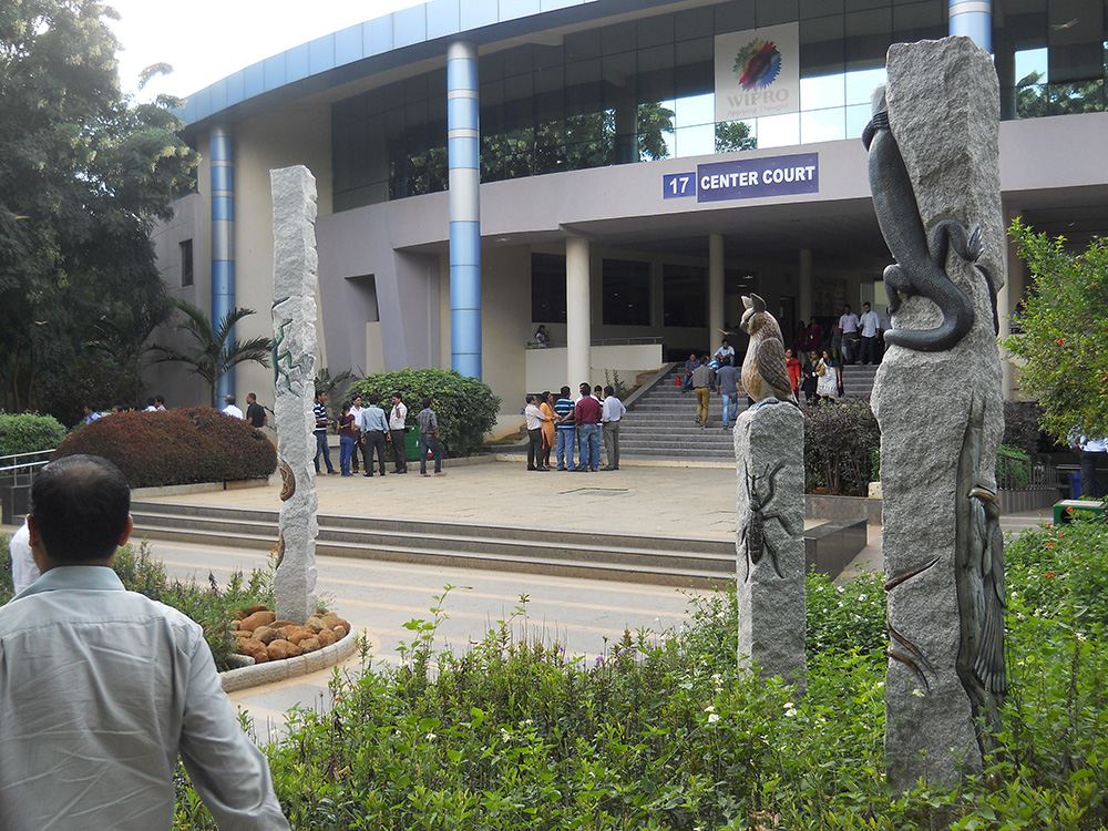 TKM has a very impressive factory laid out over 500 acres at Bidadi industrial area along the Bangalore – Mysore Highway. Here 25 acres have been set aside as an ECOZONE principally to sensitise employees of TKM and other corporates in Bidadi, their families and children from surrounding schools about environmental and conservation issues. PFC was contracted to execute the Artwork for the site which involved interpretation signage, carving and painting gigantic pillars for a timeline walk, 3D carvings of keystone animal species, 2D carving on boulders depicting endangered plant species and artistically designed mosaic seating. This venture has been very rewarding and it was a pleasure to be appreciated by the top executives and CEOs of Toyota, many of whom had flown down from Japan to attend the opening ceremony of the park.